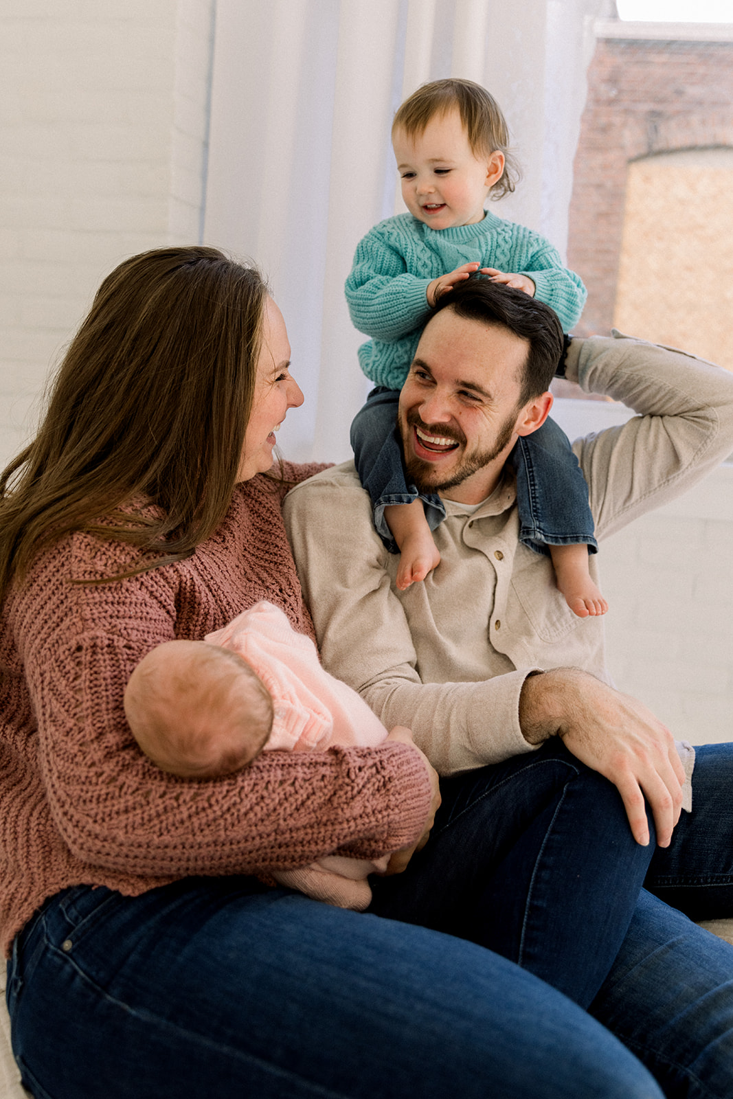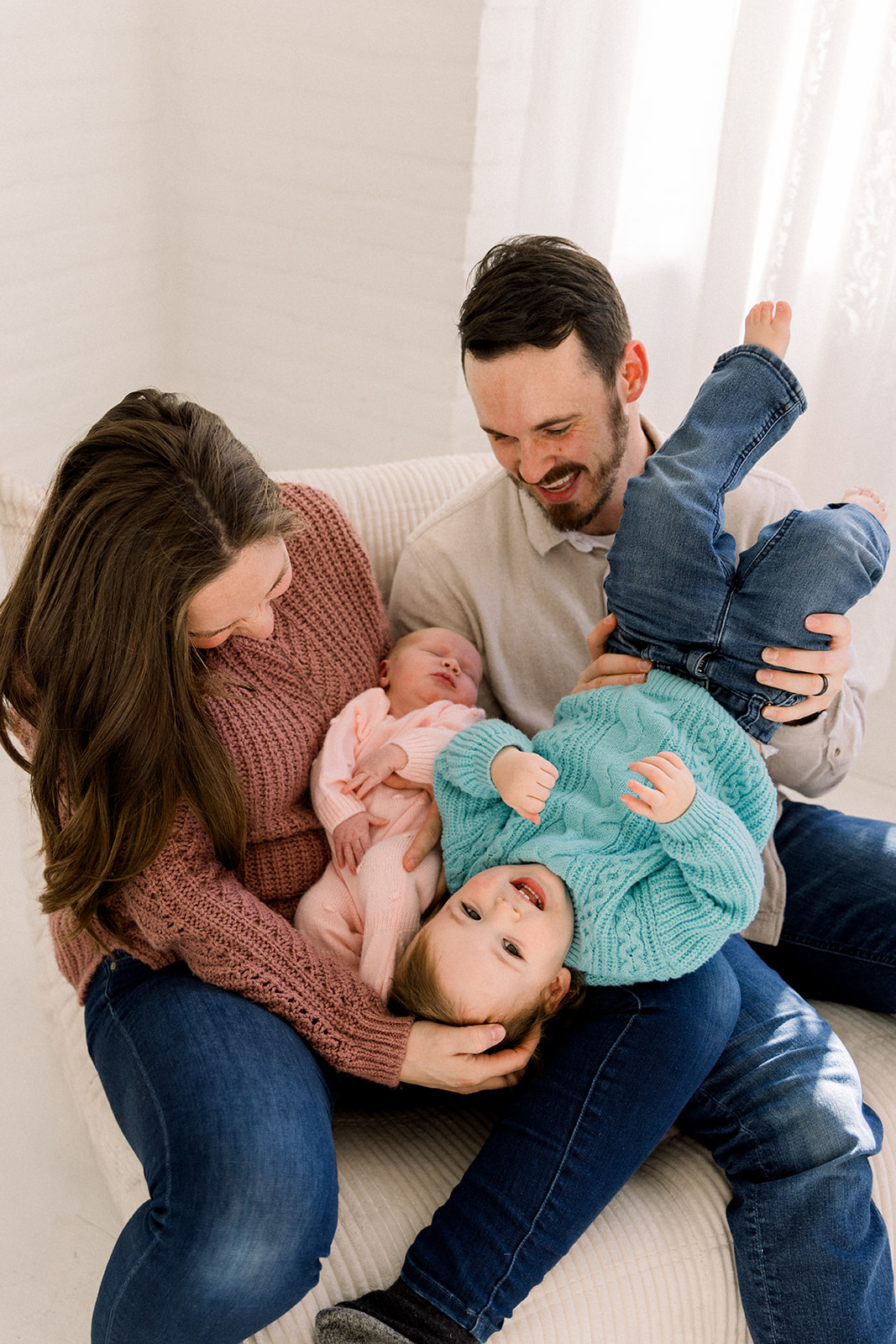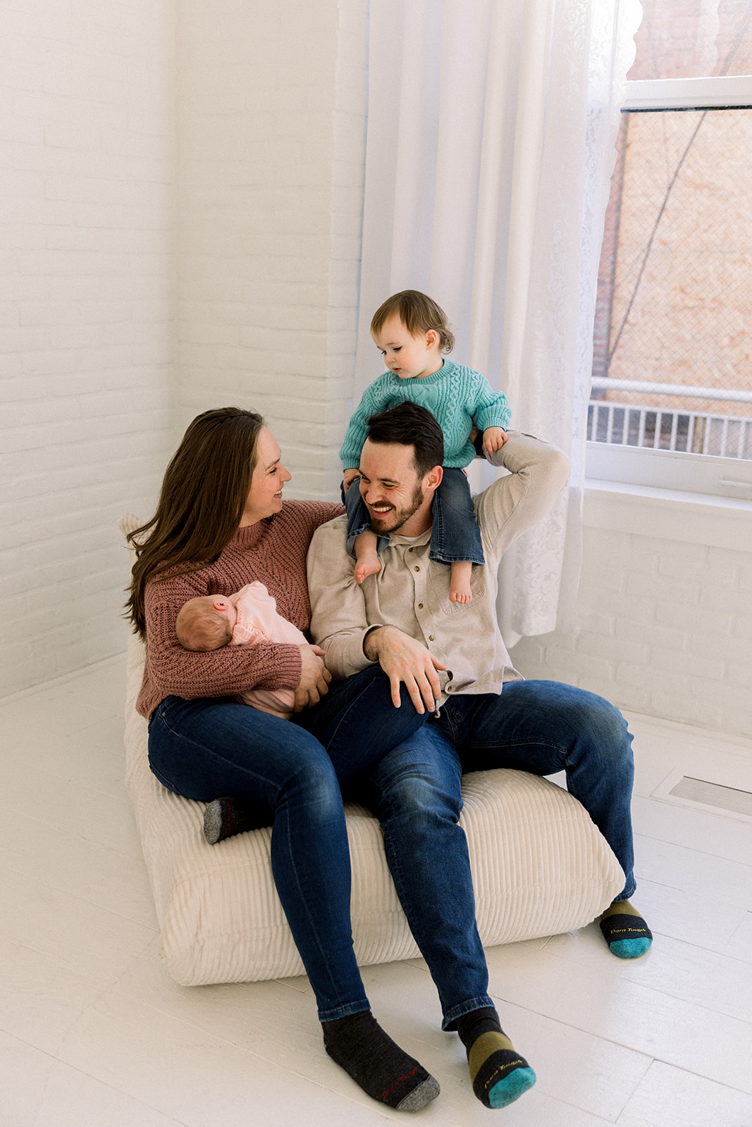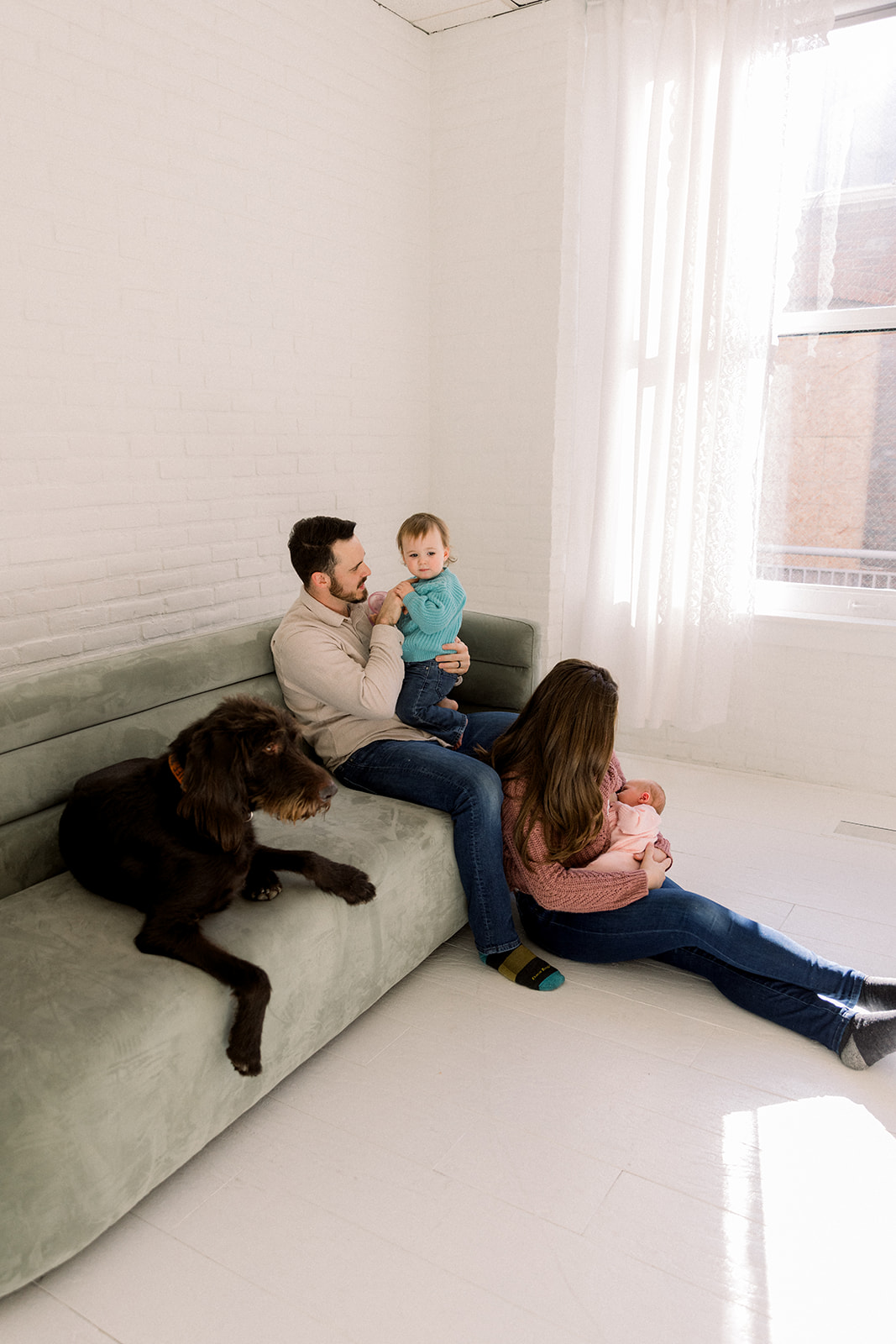 We leaned into the beautifully imperfect moments. Tiny snuggles, curious glances, puppy check-ins, and the kind of connection that can’t be posed. Set in a cozy downtown Boise, Idaho studio, Studio Boise, the space felt warm and relaxed, giving everyone room to just be.
