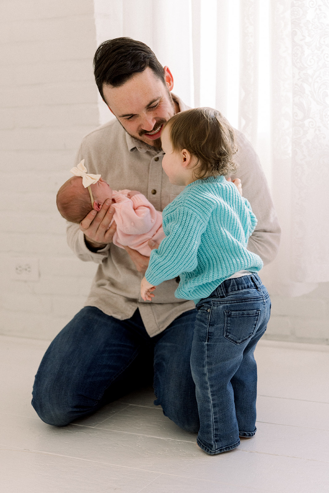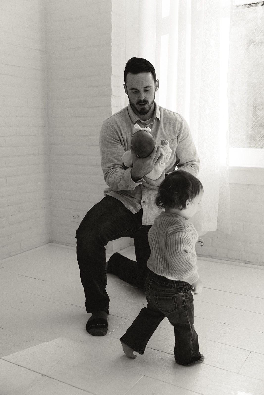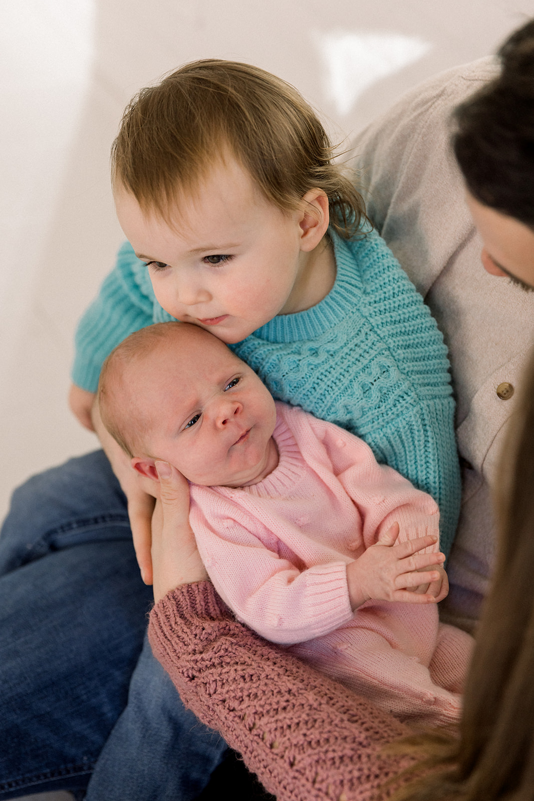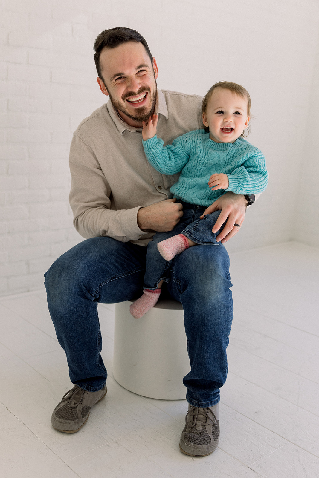 We leaned into the beautifully imperfect moments. Tiny snuggles, curious glances, puppy check-ins, and the kind of connection that can’t be posed. Set in a cozy downtown Boise, Idaho studio, Studio Boise, the space felt warm and relaxed, giving everyone room to just be.
