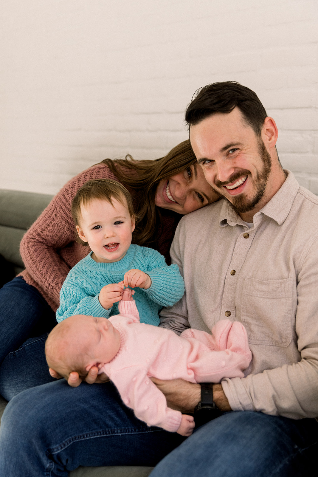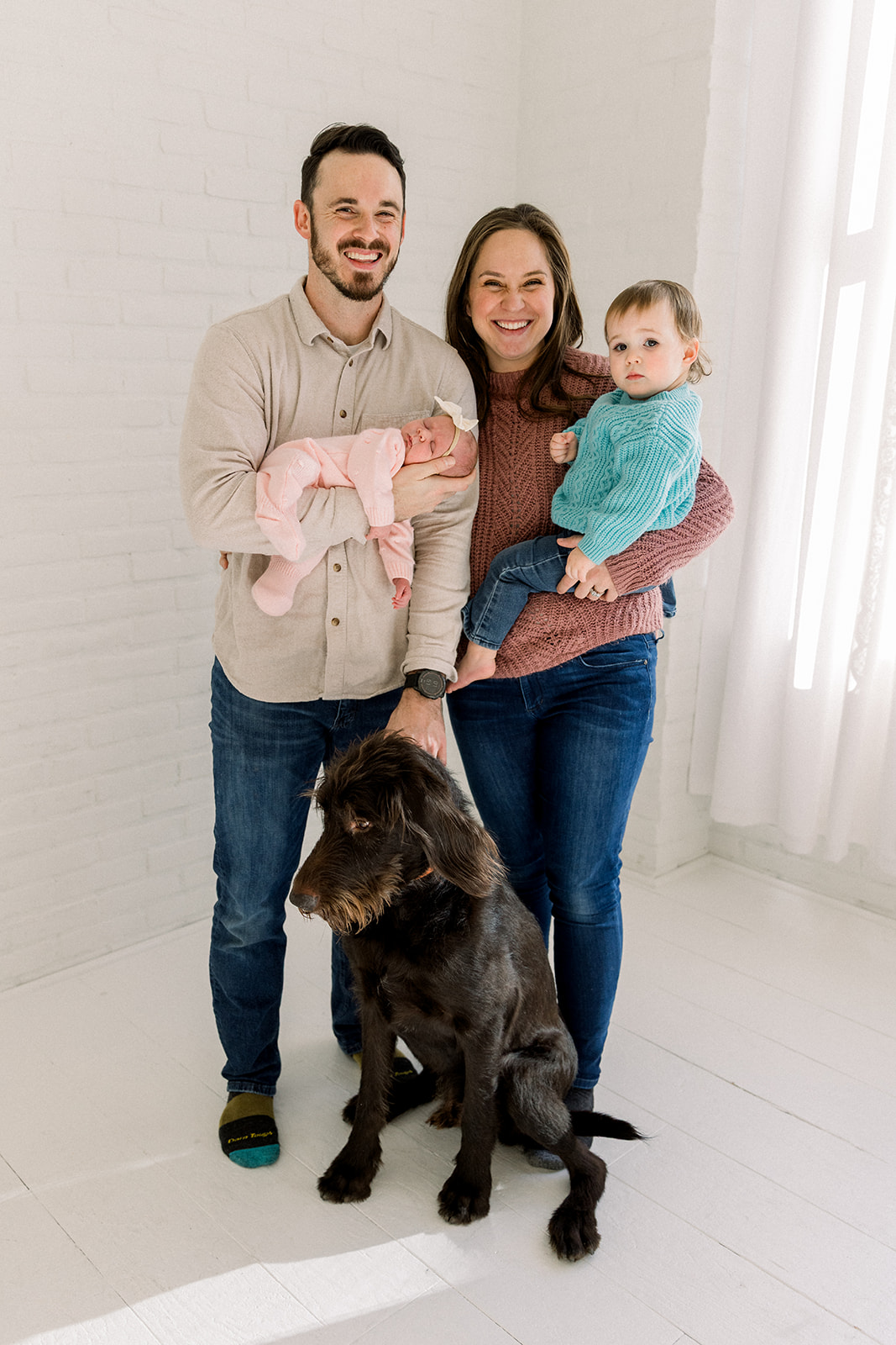This family session was all about celebrating the newest member of the crew and letting big sister Claire be fully, wonderfully herself. Even their dog Griff joined in, making sure no moment went by without a little extra love.